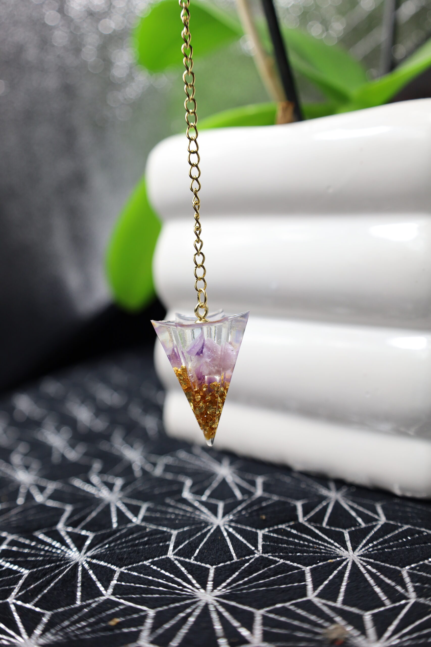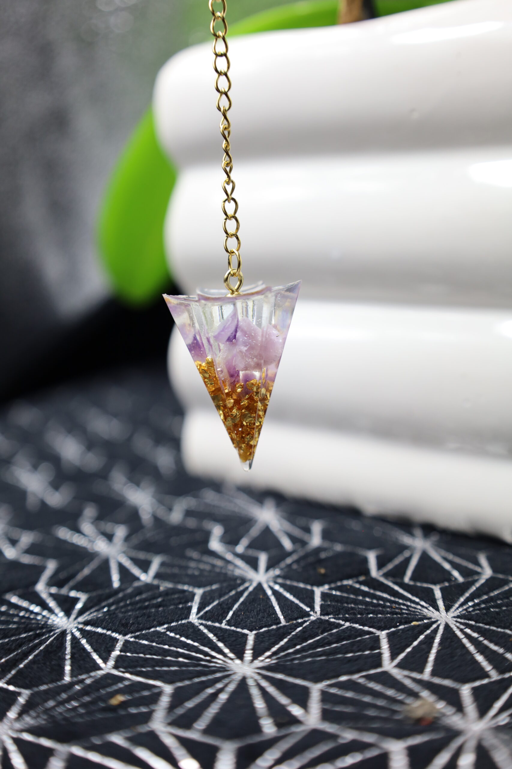 L’améthyste est une pierre de protection, de clarté mentale et de connexion intuitive, ce qui fait de ce pendule un outil puissant pour vos pratiques.