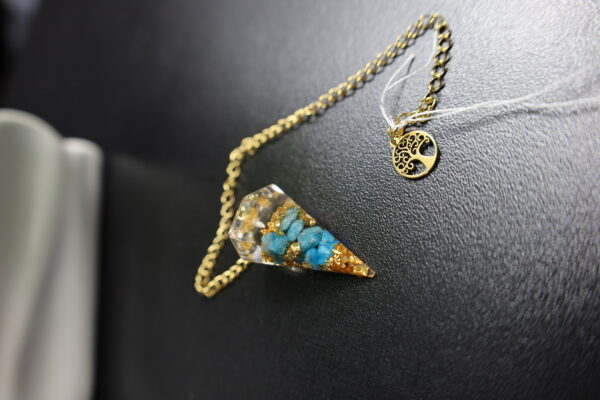 Soyez le premier à laisser votre avis sur “Pendule en Apatite Bleue, Pierre Dorée & Breloque Arbre de Vie”
