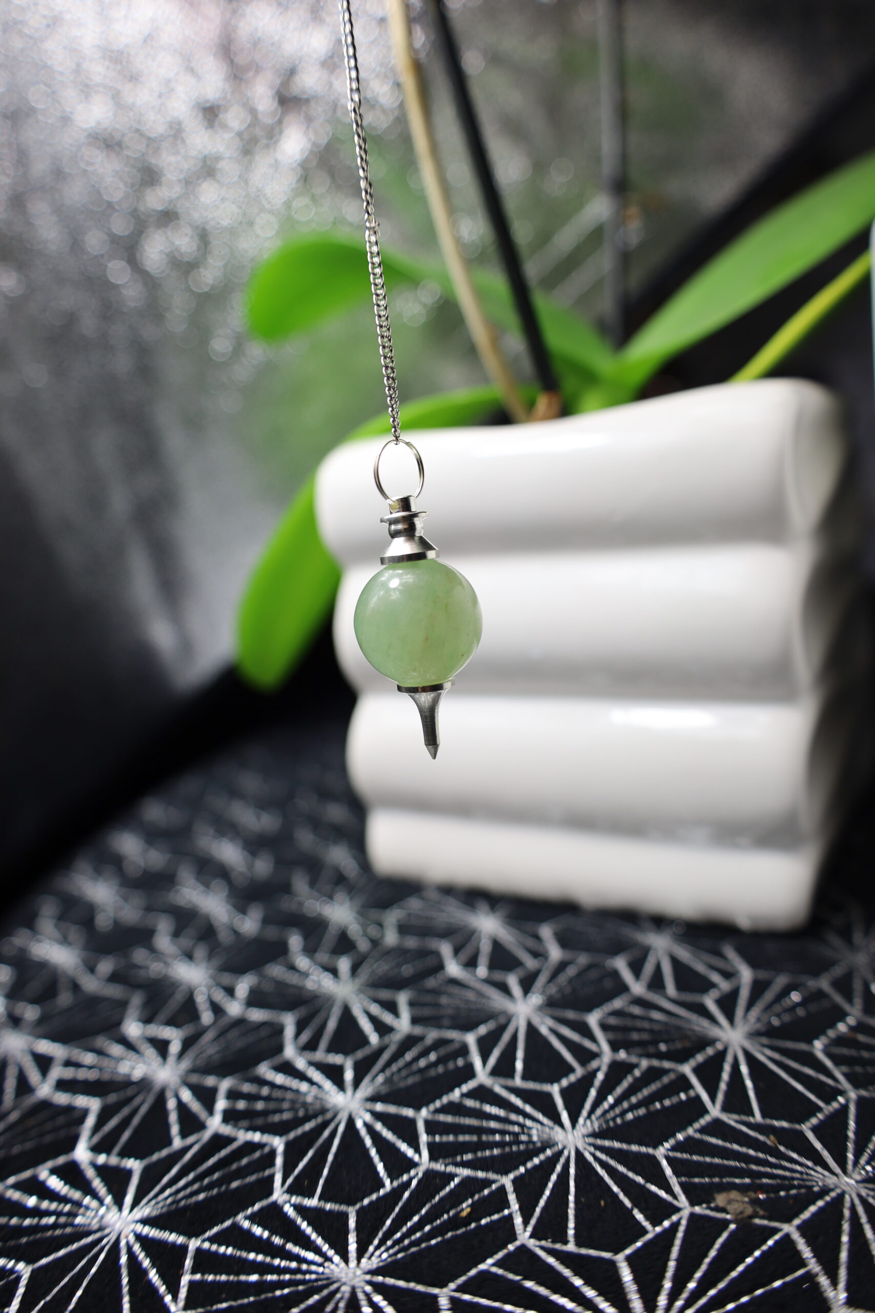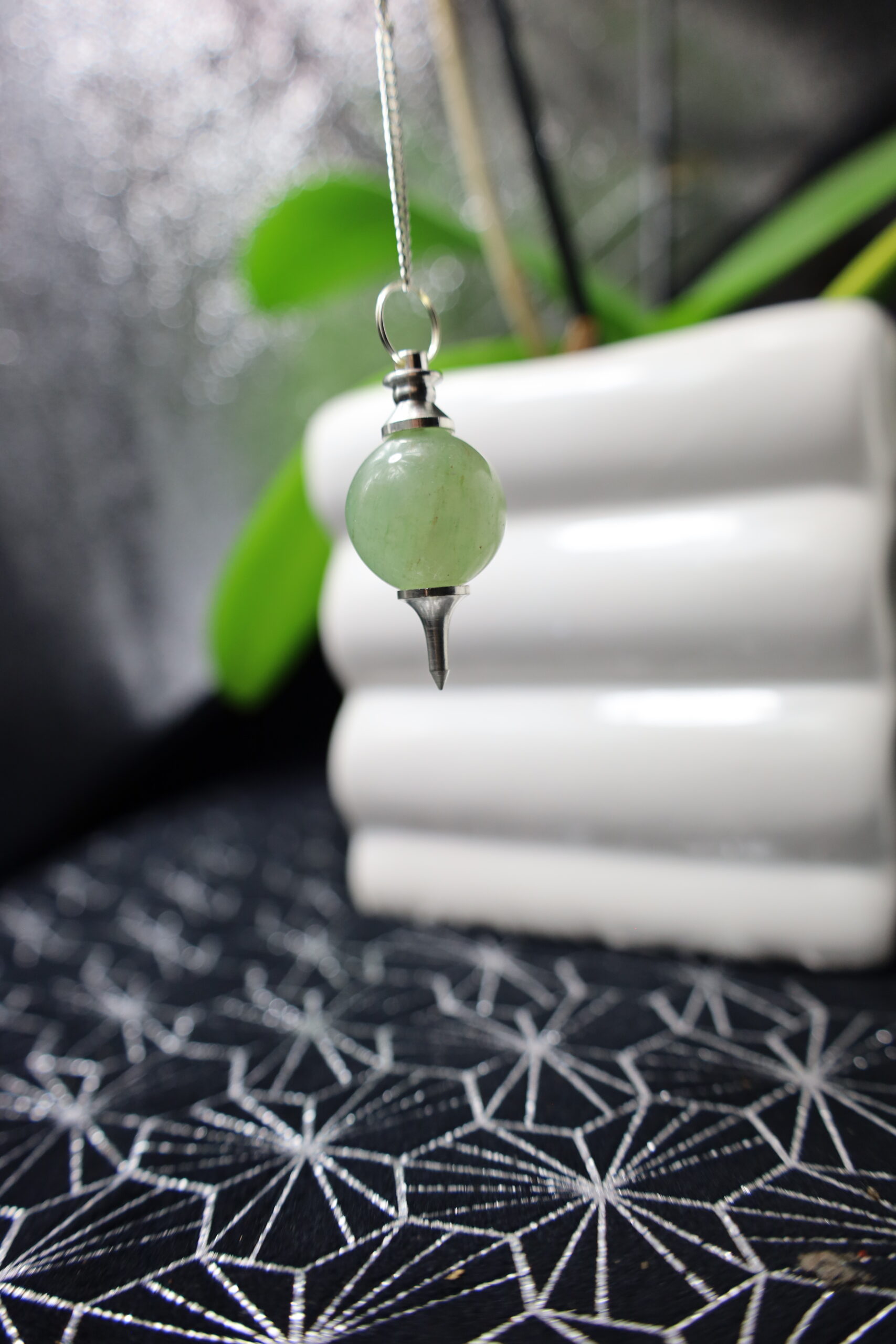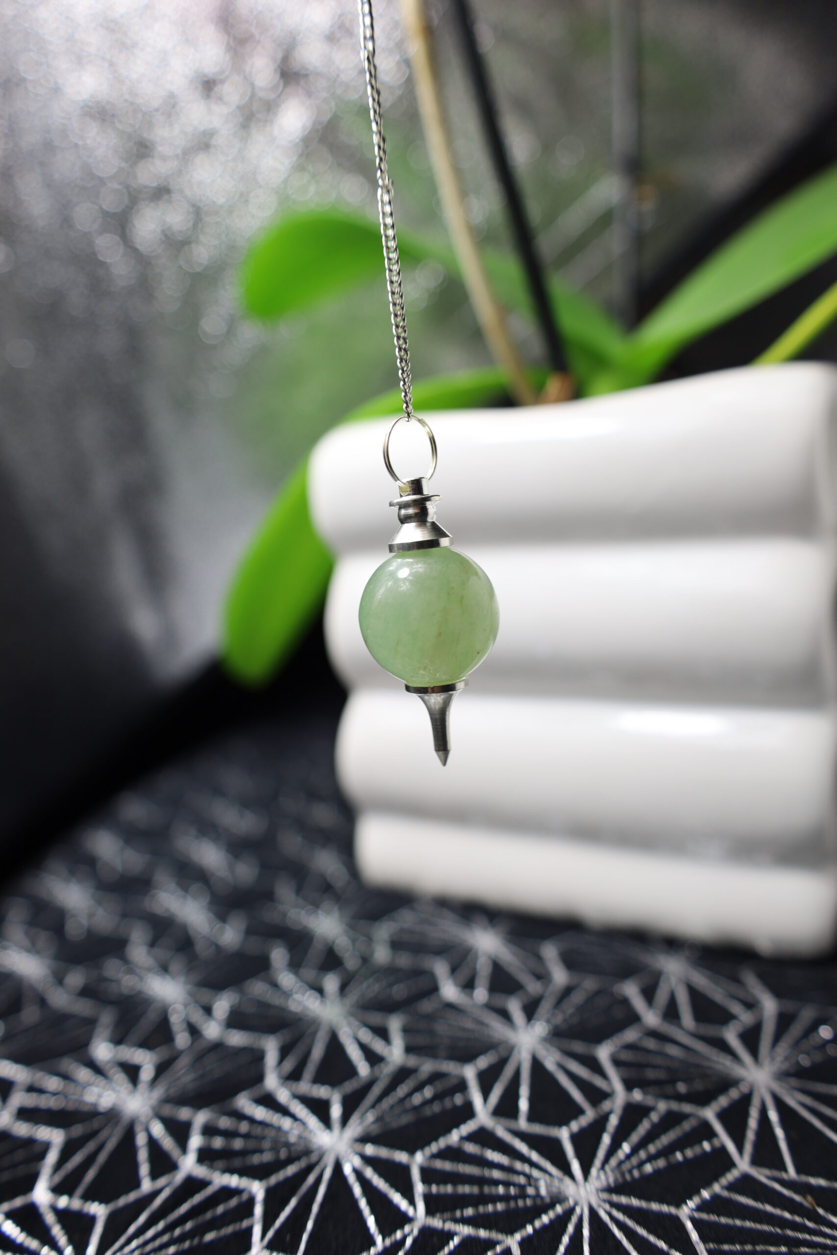 💚 Pendule en Aventurine – Sphère Arrondie – Métal Argenté