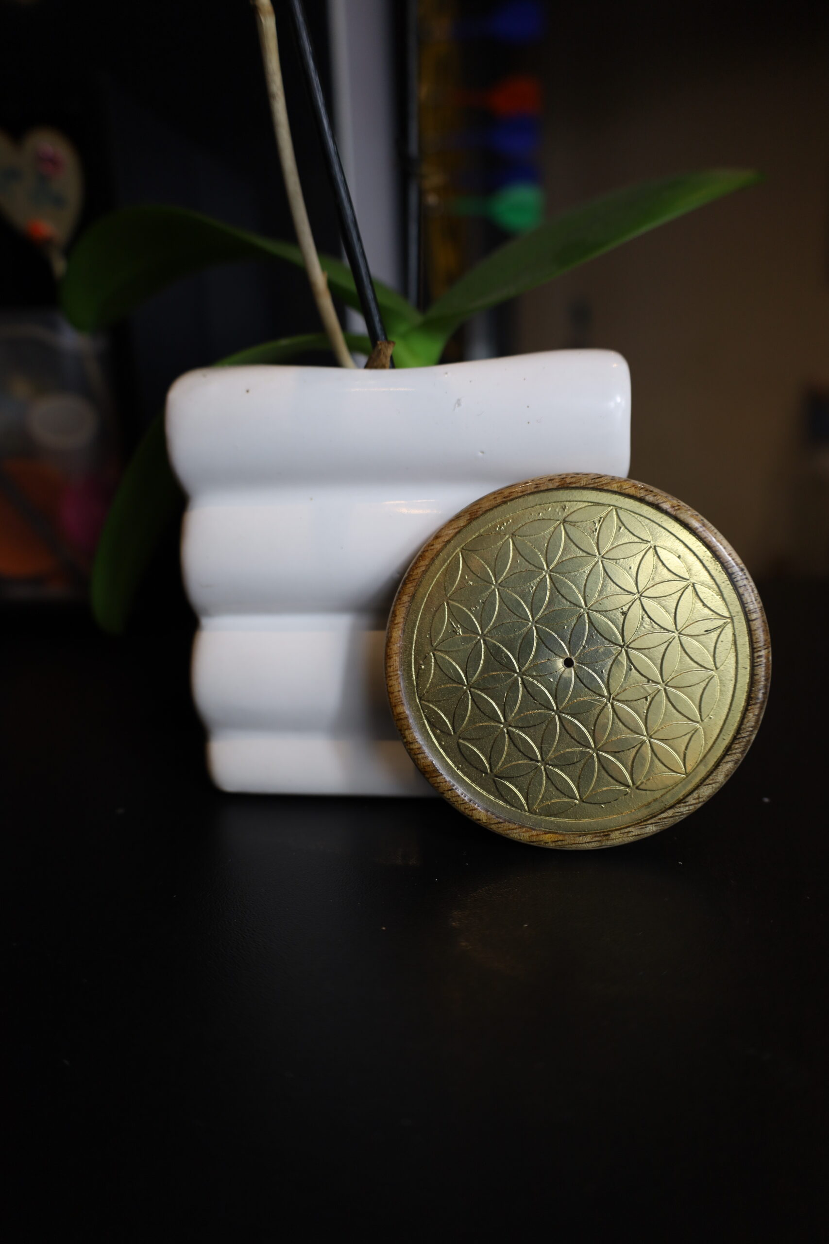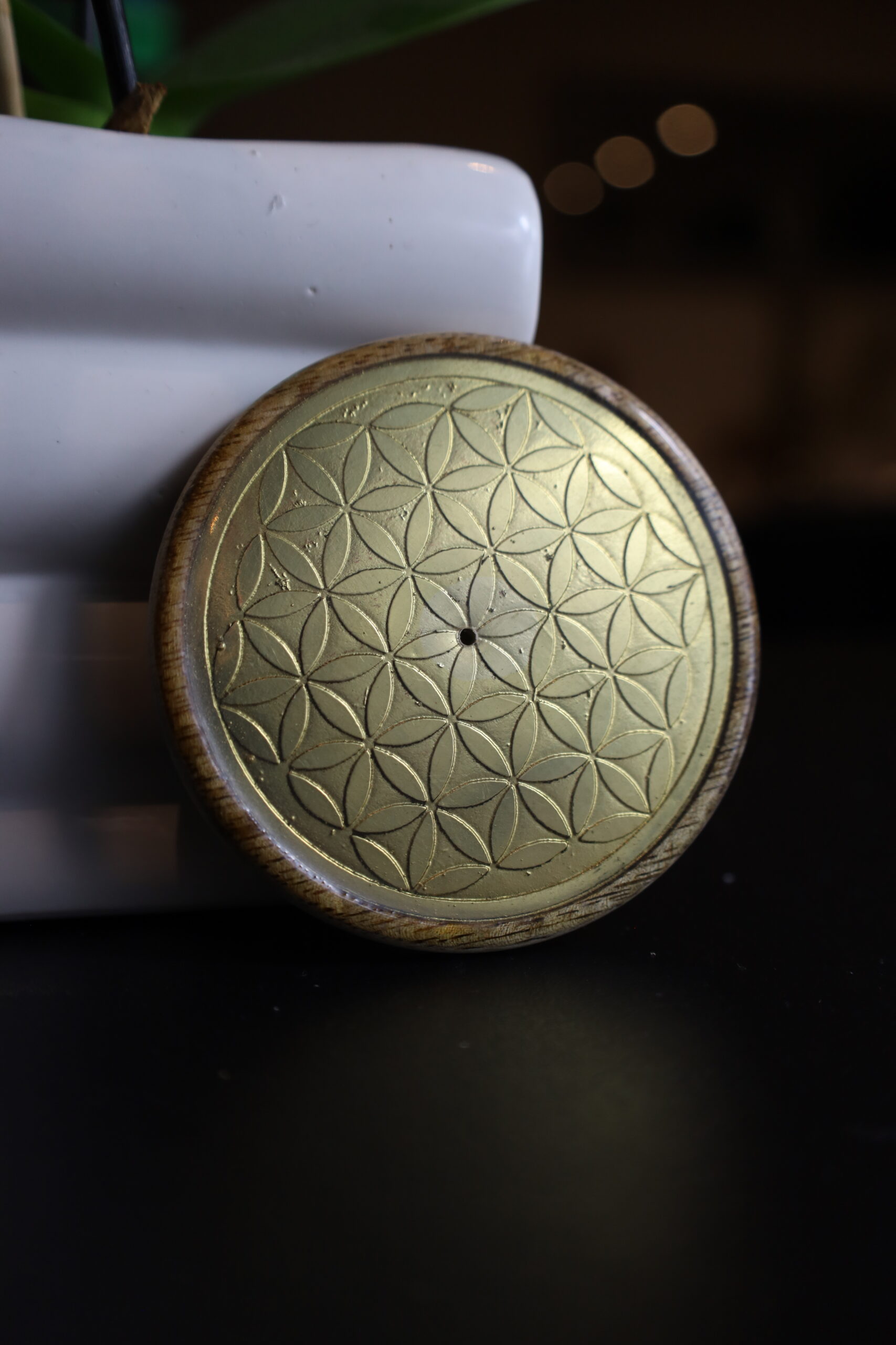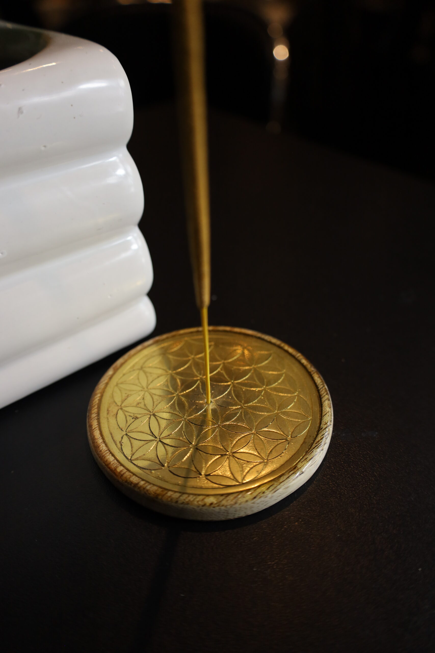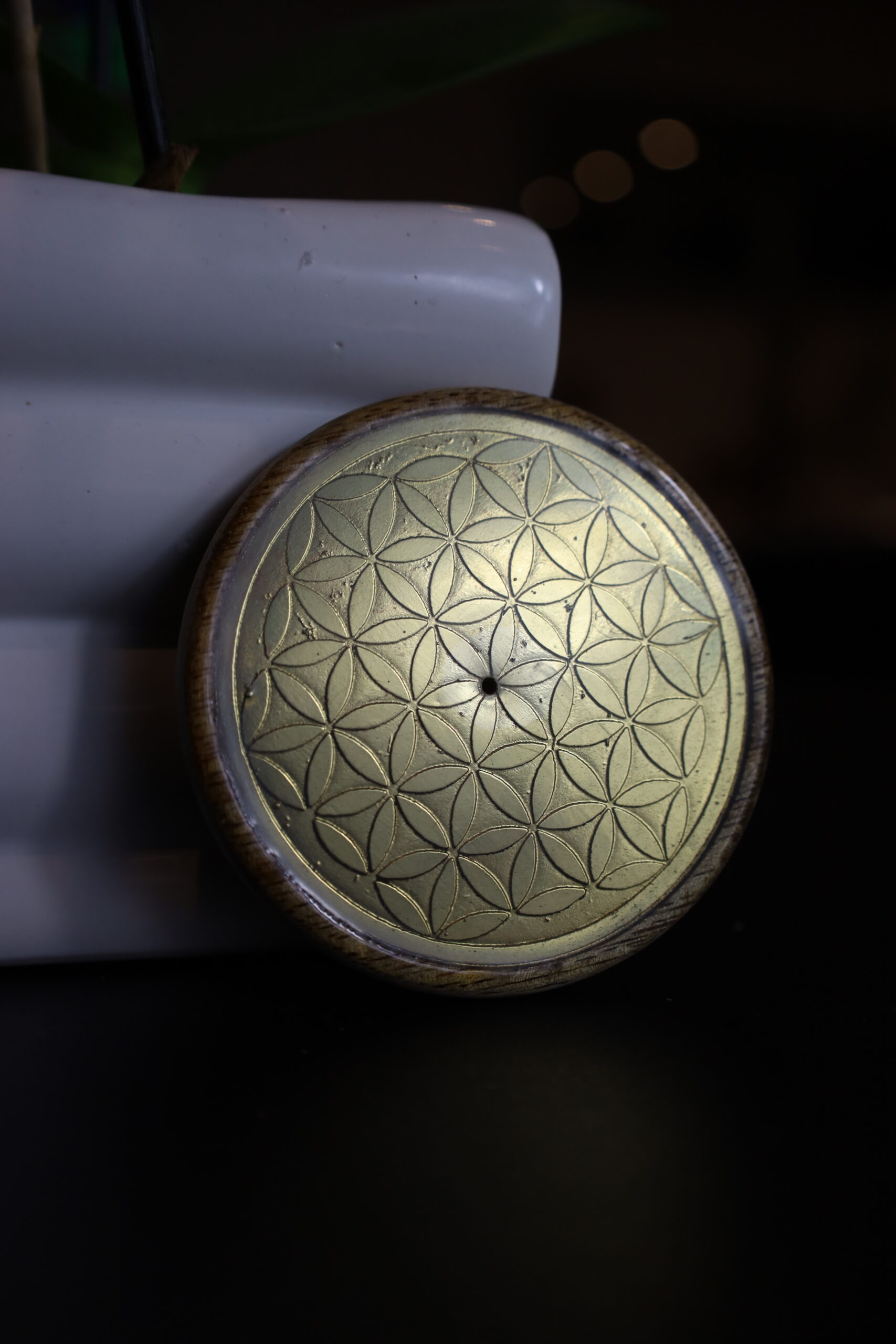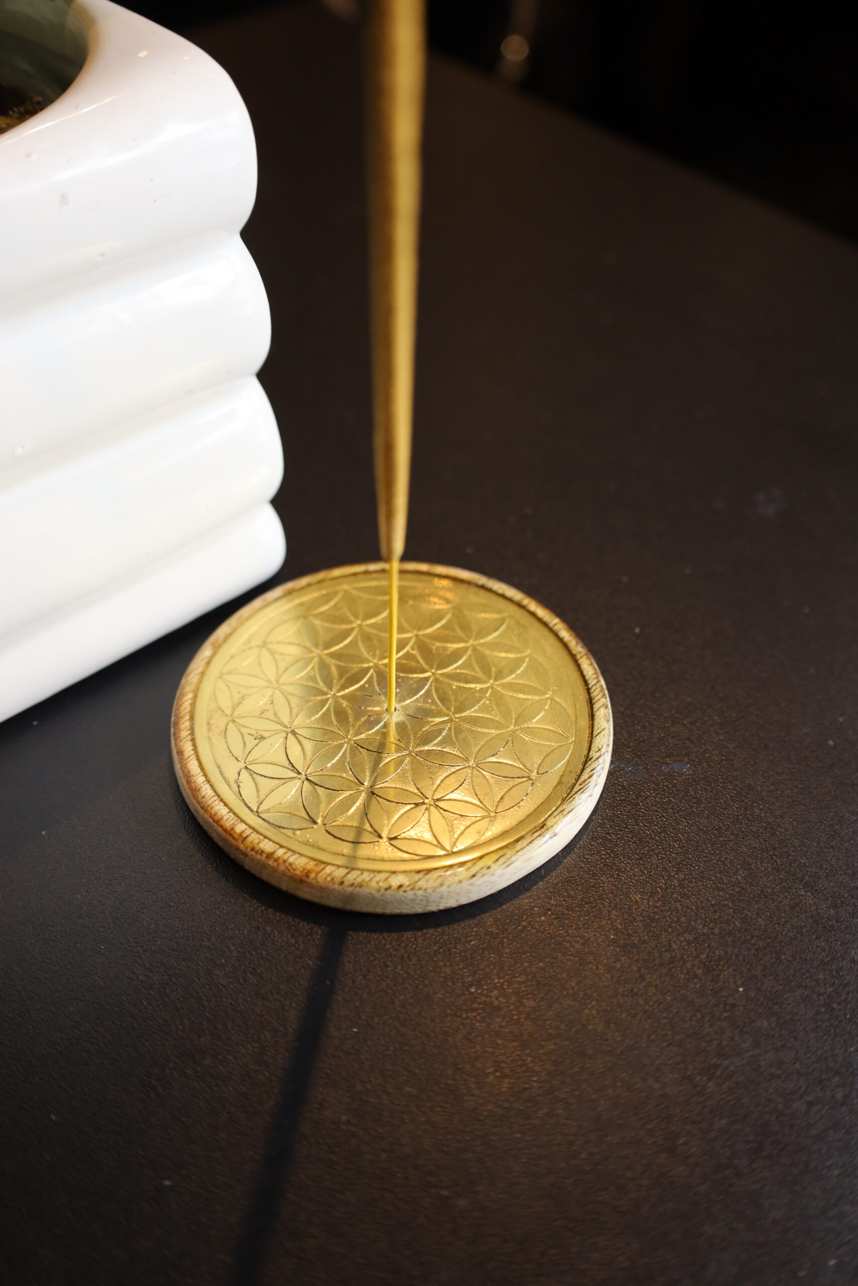 đ Porte Encens & Plateau de Rechargement â Fleur de Vie PlaquĂ© Or
